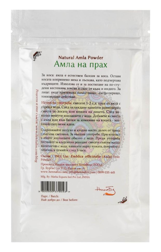 Amla findet Anwendung in der Haar- und Hautpflege. Es enthält natürliche Tannine und Vitamin C (Ascorbinsäure); macht das Haar voluminös und weich; betont die Locken. Hinzugefügt zu Henna/Indigo, mildert Amla leicht die rötlichen Nuancen. Es ist auch ein ausgezeichneter Gesichtspeeling.