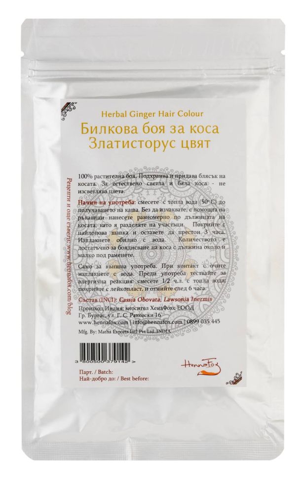 100% natural herbal dye for naturally beautiful hair! Contains henna and cassia for nourishment and coloring in a golden shade and covers white hair excellently. Suitable for naturally light hair.